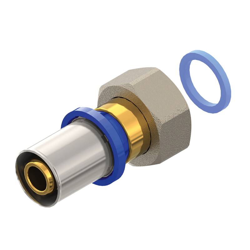 Złączka zaciskowa do rur wielowarstwowych Emmeti, zaprojektowana tak, aby zagwarantować wyciek wody w przypadku niezaprasowania oraz szybkie i bezpieczne połączenie rury z kształtką po prawidłowym zaprasowaniu, dzięki zastosowaniu techniki zaciskania radialnego.