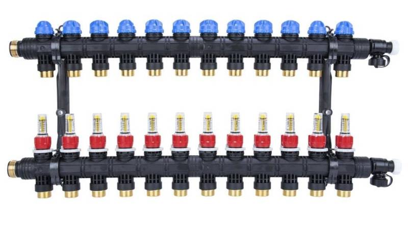 AFRISO PROCALIDA EF1 K 12 obwodowy z wkładkami termostatycznymi pod siłowniki, rotametrami (wykonany z tworzywa)