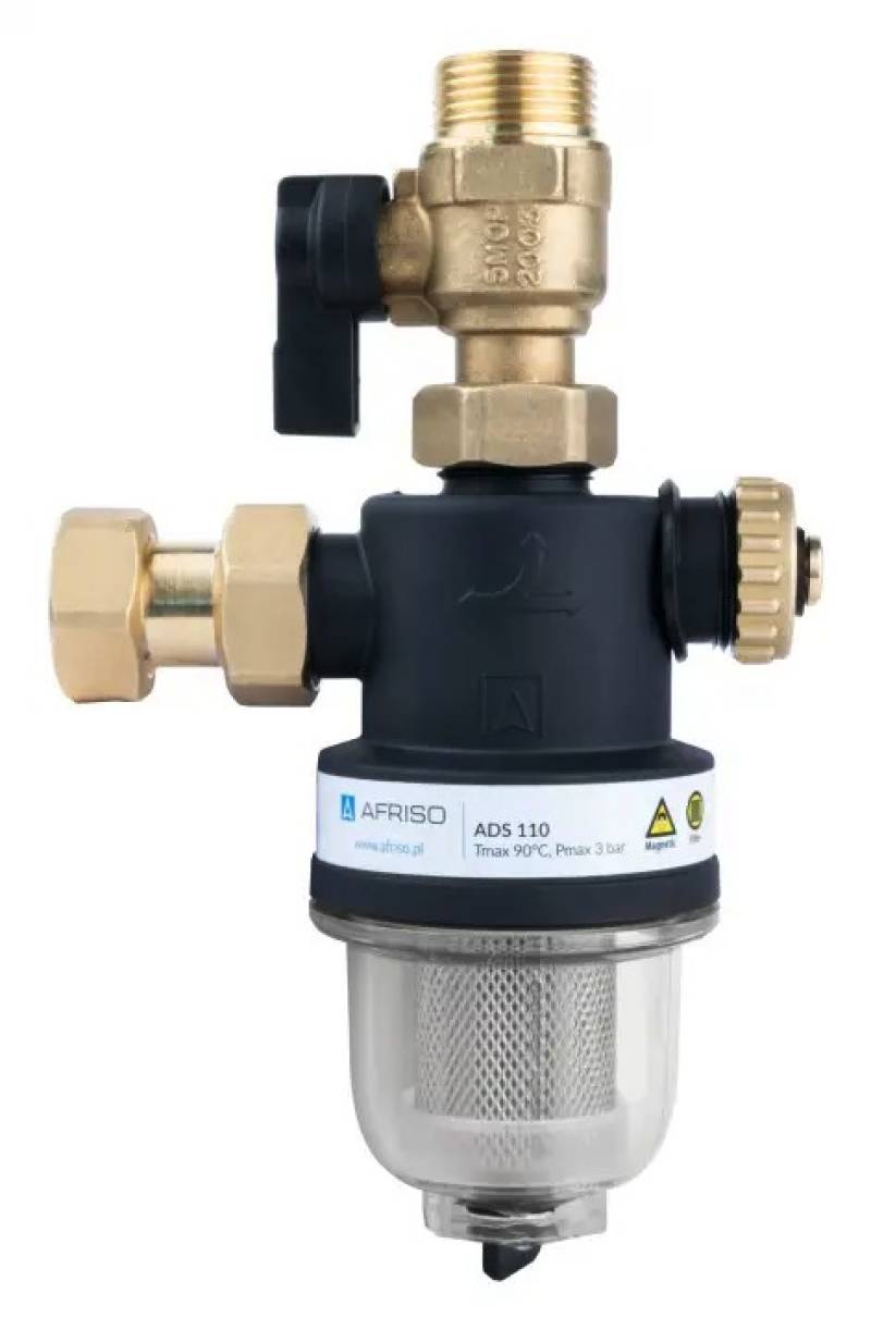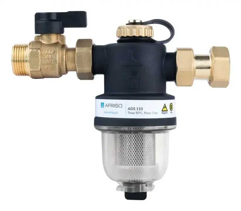 Separator magnetyczny zanieczyszczeń AFRISO ADS 110 3/4", Kvs 5,2 m3/h, z zaworem odcinającym i złączką