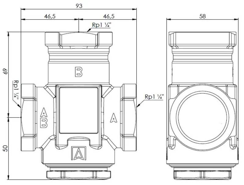 Zawór temperaturowy ATV 554, DN32, Rp1 1/4", kvs 9, 50°C